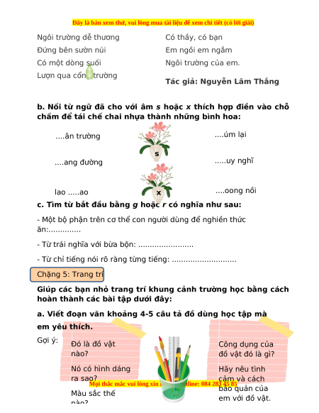 để giúp các bạn nhỏ thu thập chai nhựa để tái chế. Em vẽ ngôi trường em Ngôi trường yêu thương Ngôi chường của em Có cây tre mát Ngói hồng rực rỡ Có cờ Tổ quốc Từng ô cửa nhỏ Bay chong gió ngàn Nhìn ra trân chời Ngôi trường khang chang