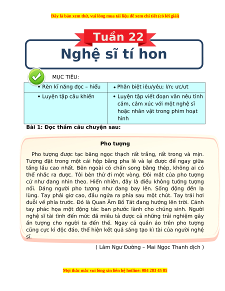 Bài 1: Đọc thầm câu chuyện sau: Pho tượng