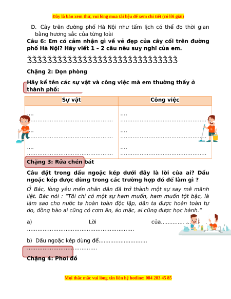 phố Hà Nội? Hãy viết 1 – 2 câu nêu suy nghĩ của em.