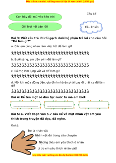 Bài 3: Viết câu trả lời rồi gạch dưới bộ phận trả lời cho câu hỏi “Để làm gì?”