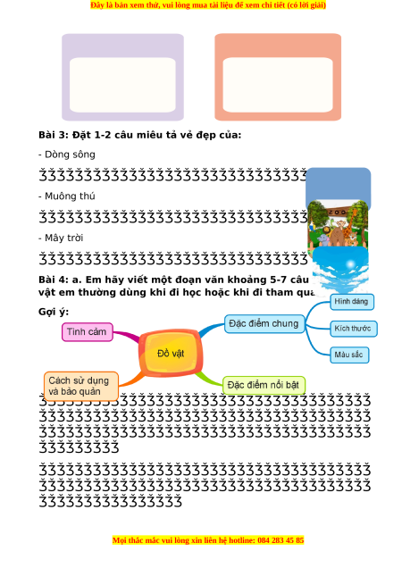 Bài 3: Đặt 1-2 câu miêu tả vẻ đẹp của: - Dòng sông