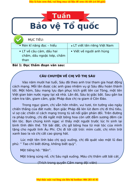 Tuần 28 Bảo vệ Tổ quốc MỤC TIÊU: