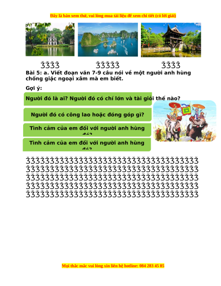 Bài 5: a. Viết đoạn văn 7-9 câu nói về một người anh hùng