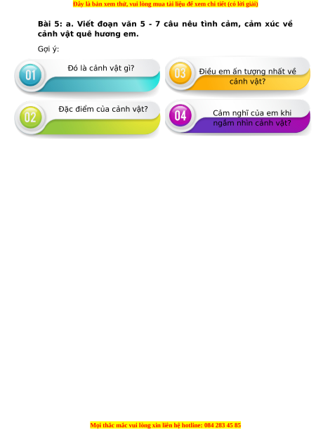 Bài 5: a. Viết đoạn văn 5 - 7 câu nêu tình cảm, cảm xúc về