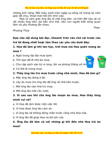 Dựa vào nội dung bài đọc, khoanh tròn vào chữ cái trước câu