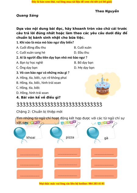 Dựa vào nội dung bài đọc, hãy khoanh tròn vào chữ cái trước
