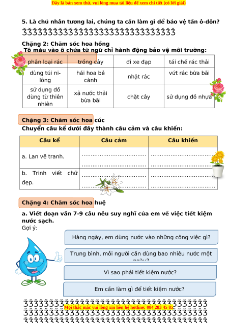 a. Viết đoạn văn 7-9 câu nêu suy nghĩ của em về việc tiết kiệm nước sạch. Gợi ý: