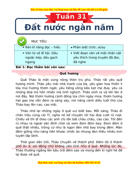 Bài 1: Đọc thầm bài văn sau: Quê hương