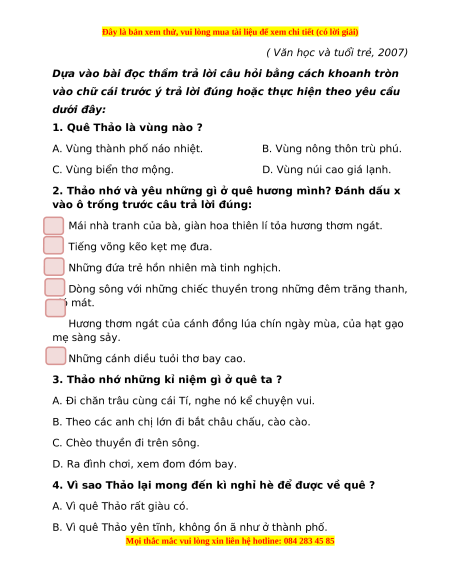Dựa vào bài đọc thầm trả lời câu hỏi bằng cách khoanh tròn
