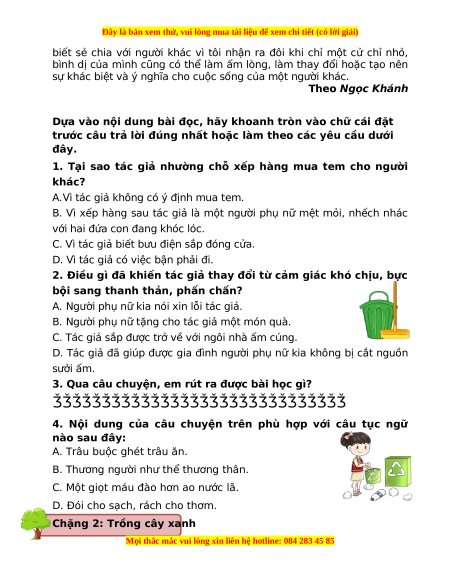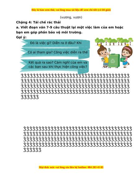 bạn em góp phần bảo vệ môi trường. Gợi ý: