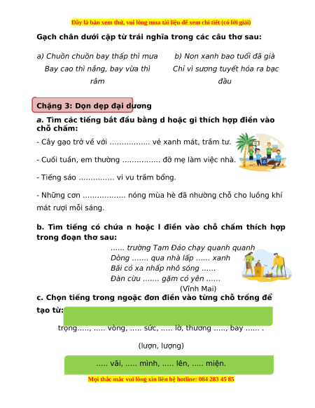 a. Tìm các tiếng bắt đầu bằng d hoặc gi thích hợp điền vào chỗ chấm: