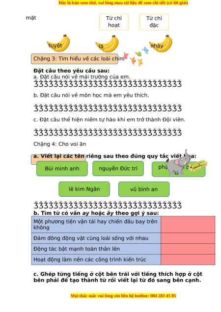 b. Tìm từ có vần ay hoặc ây theo gợi ý sau:
