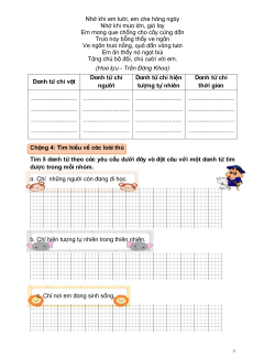 Tìm 5 danh từ theo các yêu cầu dưới đây và đặt câu với một danh từ tìm