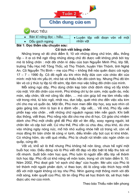 Viết đoạn văn ngắn về nhân vật tôi trong câu chuyện mà em đã nghe/ đã đọc. Gợi ý: Cảm nhận chung của Nêu đặc điểm ngoại 1 2 em về nhân vật. hình của nhân vật. Nêu đặc điểm tính
