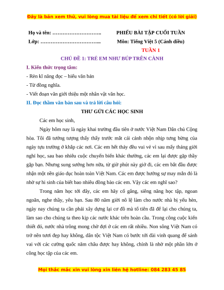 - Tailieugiaovien.com.vn giới thiệu phiếu bài tập cuối tuần môn Tiếng Việt lớp 5 bộ Cánh diều mới nhất nhằm giúp Giáo viên có thêm tài liệu tham khảo Tiếng Việt lớp 5.