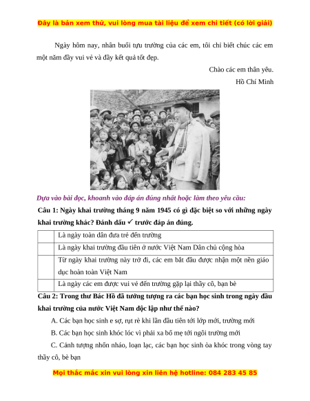 Câu 1: Ngày khai trường tháng 9 năm 1945 có gì đặc biệt so với những ngày