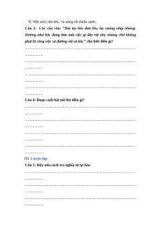 Câu 3: Đặt câu với 1 – 2 từ mà em đã tìm hiểu nghĩa ở bài tập trên (Câu 2).