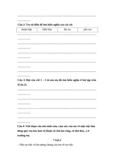 Câu 2: Tra từ điển để tìm hiểu nghĩa của các từ: thuần hậu hiền hòa ấm no yên vui