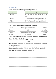 Câu 1: Nối từ ở bên A với nghĩa phù hợp ở bên B: A B a. An ninh