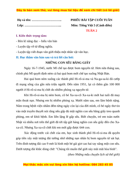 - Tailieugiaovien.com.vn giới thiệu phiếu bài tập cuối tuần môn Tiếng Việt lớp 5 bộ Cánh diều mới nhất nhằm giúp Giáo viên có thêm tài liệu tham khảo Tiếng Việt lớp 5.