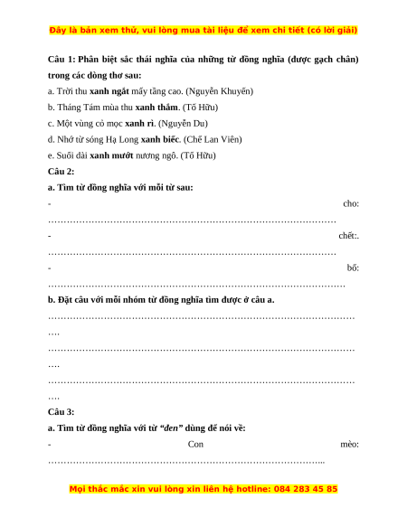 - Luyện tập về từ đồng nghĩa.