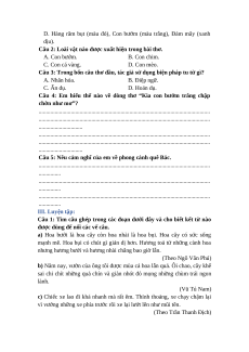Câu 2: Loài vật nào được xuất hiện trong bài thơ. A. Con bướm. B. Con chim. C. Con cá vàng. D. Con mèo.