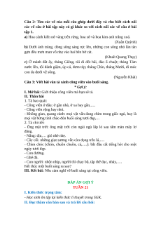 III. Kết bài: Nêu cảm nghĩ về buổi sáng tại công viên. ĐÁP ÁN GỢI Ý TUẦN 21