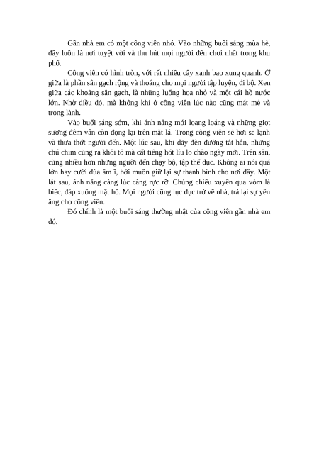 Câu 3: Viết bài văn tả cảnh công viên vào buổi sáng. * Gợi ý: