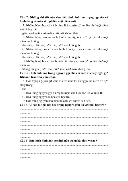 II. Đọc thầm văn bản sau và trả lời câu hỏi: HOA TRẠNG NGUYÊN