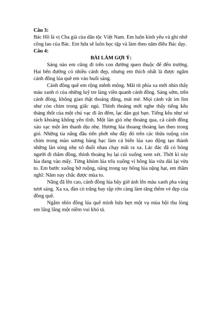 Câu 4: Viết bài văn tả phong cảnh đồng lúa quê em. * Gợi ý: