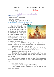 - Tailieugiaovien.com.vn giới thiệu phiếu bài tập cuối tuần môn Tiếng Việt lớp 5 bộ Cánh diều mới nhất nhằm giúp Giáo viên có thêm tài liệu tham khảo Tiếng Việt lớp 5.