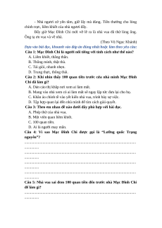 Câu 6: Chẳng những Mạc Đĩnh Chi có tài mà ông còn là người vô cùng