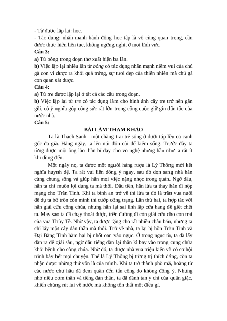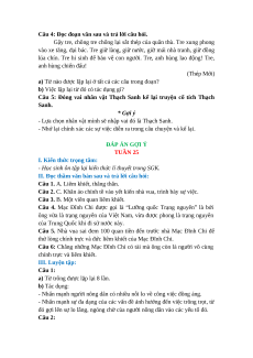 Câu 5: Đóng vai nhân vật Thạch Sanh kể lại truyện cổ tích Thạch Sanh. * Gợi ý