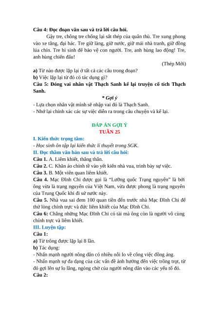 - Nhớ lại chính xác các sự việc diễn ra trong câu chuyện và kể lại. ĐÁP ÁN GỢI Ý TUẦN 25