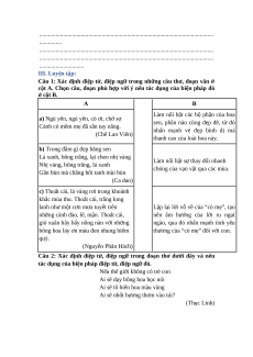 cột A. Chọn câu, đoạn phù hợp với ý nêu tác dụng của biện pháp đó ở cột B. A B