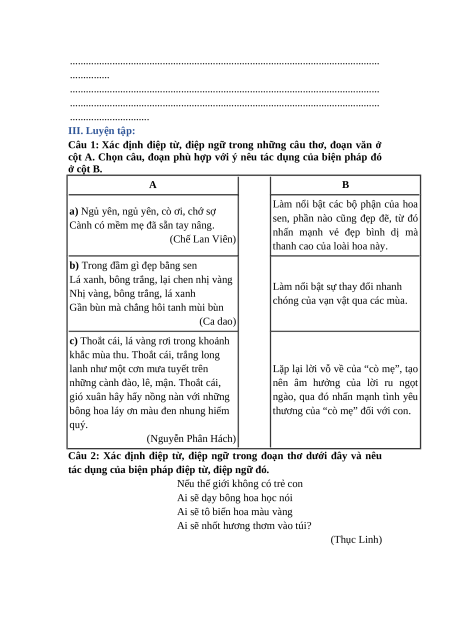 - Điệp từ và điệp ngữ.
