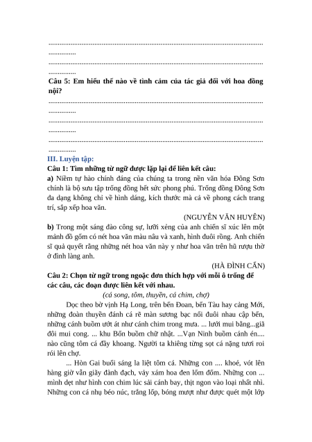 II. Đọc thầm văn bản sau và trả lời câu hỏi: HOA ĐỒNG NỘI