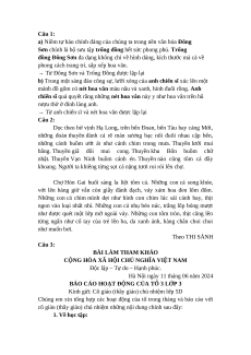 Câu 3: Viết báo cáo kết quả của tổ em khi tham gia một dự án học tập. * Gợi ý: - Phần mở đầu: