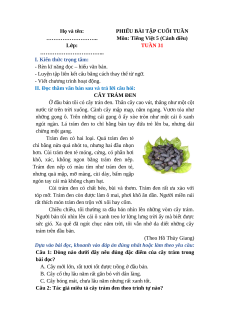 - Tailieugiaovien.com.vn giới thiệu phiếu bài tập cuối tuần môn Tiếng Việt lớp 5 bộ Cánh diều mới nhất nhằm giúp Giáo viên có thêm tài liệu tham khảo Tiếng Việt lớp 5.