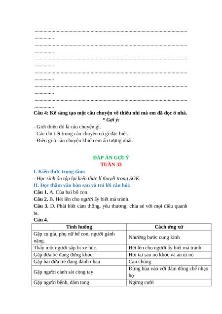 - Điều gì ở câu chuyện khiến em ấn tượng nhất. ĐÁP ÁN GỢI Ý TUẦN 33