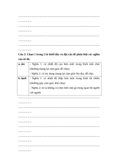 Câu 2: Chọn 1 trong 2 từ dưới đây và đặt câu để phân biệt các nghĩa của từ đó. a. ấm