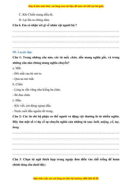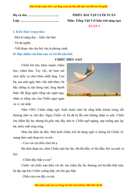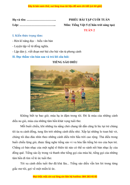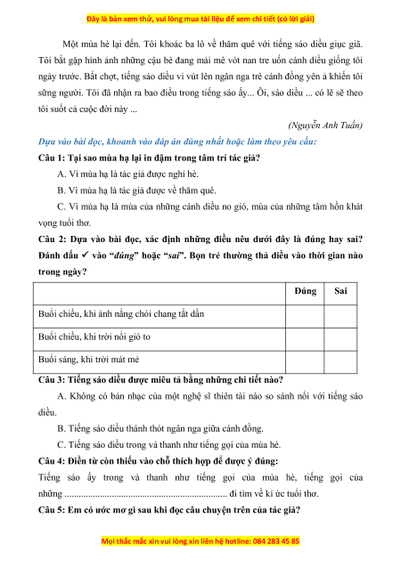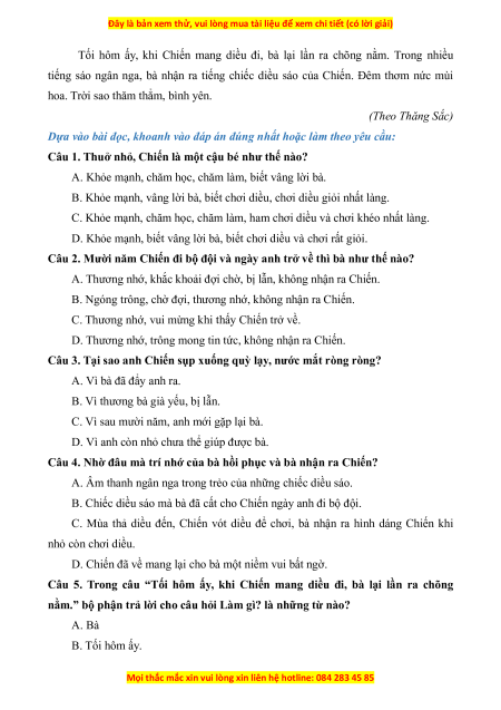 Đọc thầm bài văn và trả lời câu hỏi bên dưới: C n di u tu i t