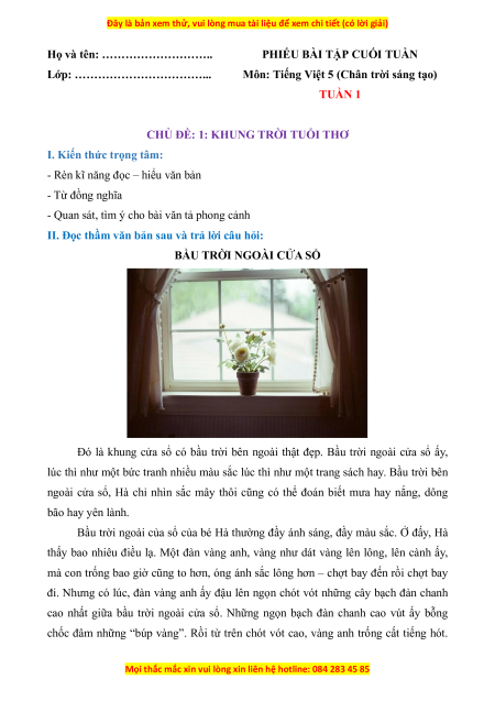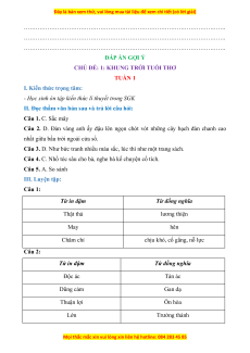 Môn: Tiếng Việt 5 (Chân trời sáng tạo) TUẦN 1