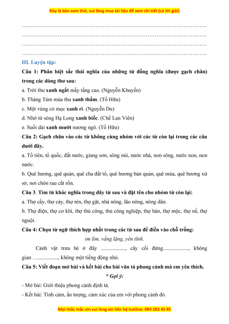 Quan sát, tìm ý cho bài văn tả phong cảnh Từ đồng nghĩa