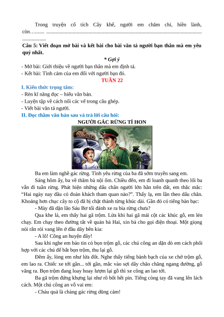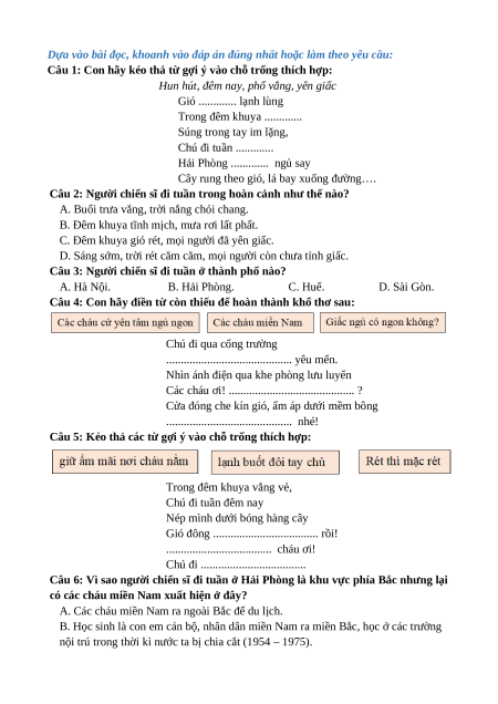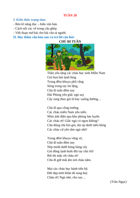 II. Đọc thầm văn bản sau và trả lời câu hỏi: CHÚ ĐI TUẦN