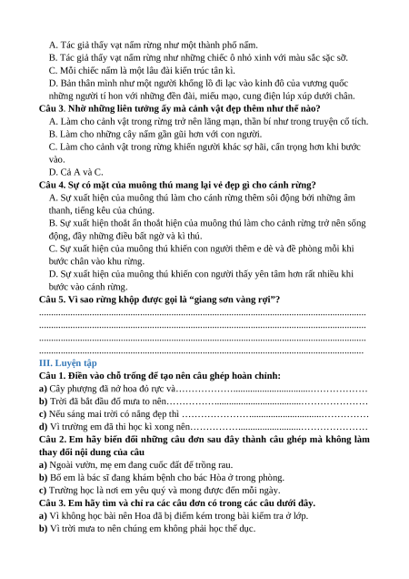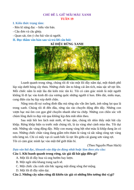 II. Đọc thầm văn bản sau và trả lời câu hỏi: KÌ DIỆU RỪNG XANH