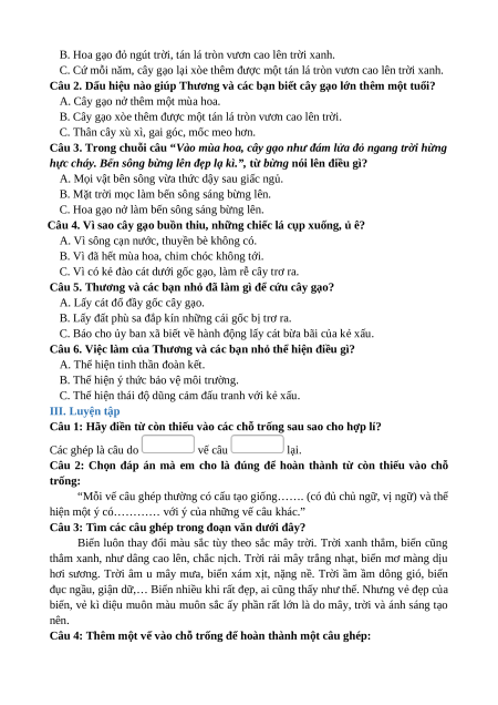 - Rèn kĩ năng đọc – hiểu văn bản. - Câu đơn và câu ghép.