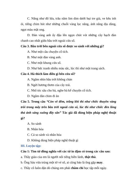 D. Không dùng biện pháp nghệ thuật gì III. Luyện tập: