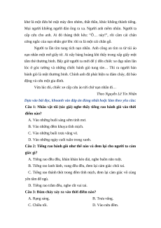 Câu 3: Đám cháy xảy ra vào thời điểm nào? A. Rạng sáng. B. Trưa vắng. C. Chiều tối. D. Vào nửa đêm.