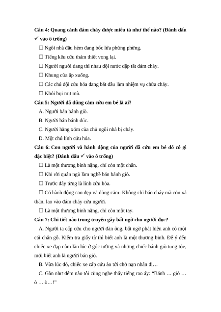 Câu 5: Người đã dũng cảm cứu em bé là ai? A. Người bán bánh giò. B. Người bán bánh đúc.